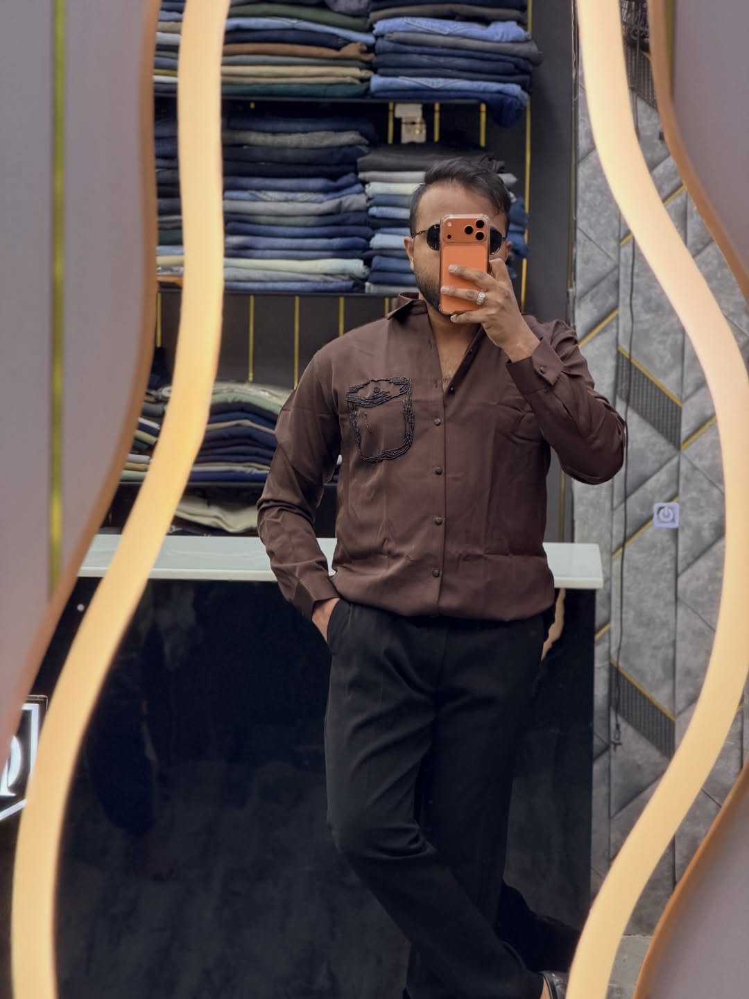 Step into modern fashion with this men’s designer pocket embroidery shirt, crafted for men who prefer a stylish yet refined appearance. Featuring a unique artistic embroidery-style pocket design, this shirt blends sophistication with contemporary fashion, making it perfect for both casual and semi-formal occasions.
