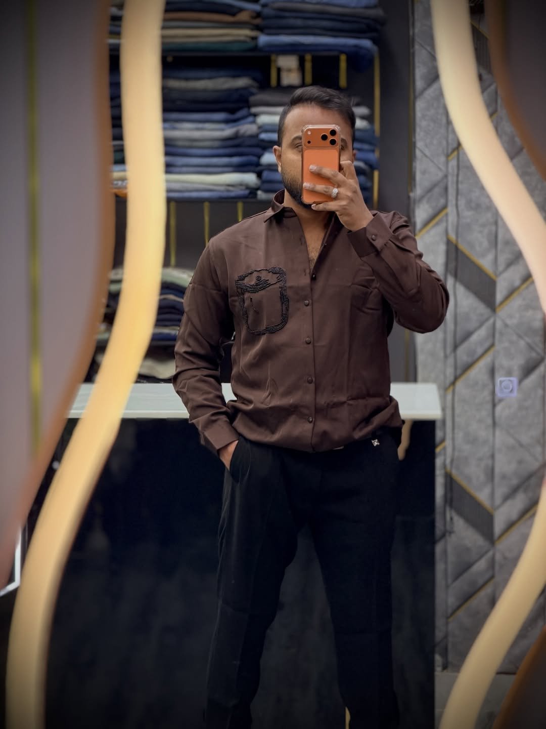Available in elegant color options like classic tan and deep brown, this designer shirt complements formal trousers, chinos, or even denim for versatile styling.