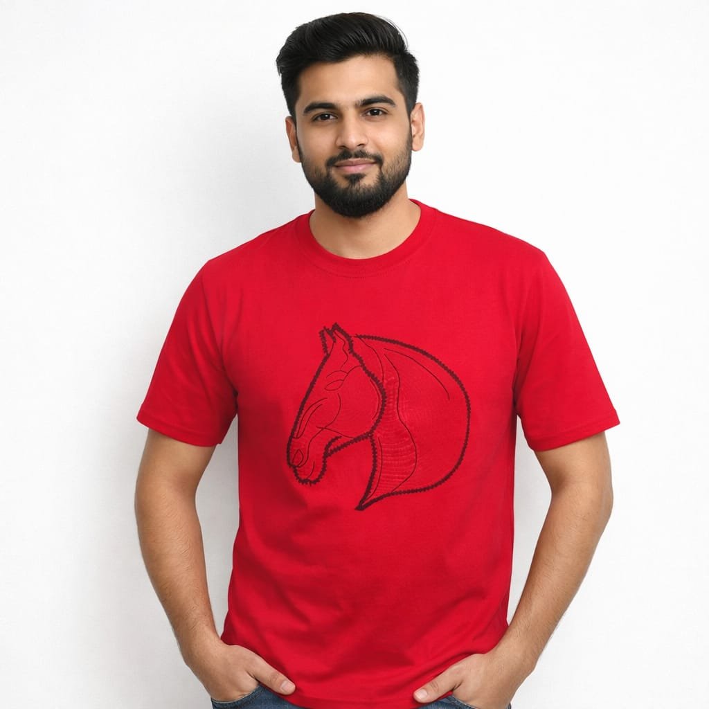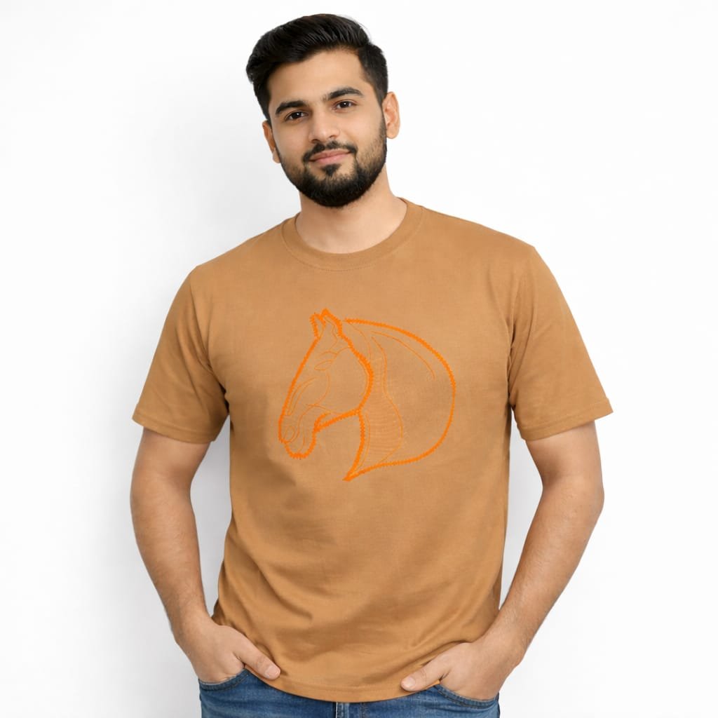 Refresh your casual wardrobe with this premium horse graphic cotton T-shirt, designed for men who prefer clean style with standout detailing. Featuring a minimal yet stylish horse outline graphic on the front, this T-shirt delivers a modern and confident everyday look.