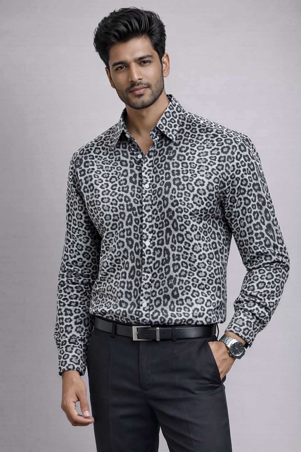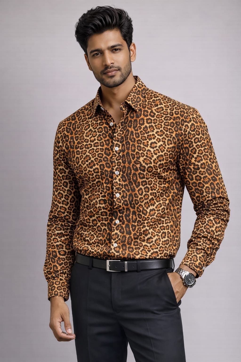 Make a confident style statement with this Premium Leopard Print Shirt, crafted for men who love bold, modern fashion. Designed with a sleek slim-fit cut and eye-catching animal print, this shirt delivers a perfect balance of elegance and attitude. The smooth, breathable fabric ensures all-day comfort while keeping your look sharp and stylish.
