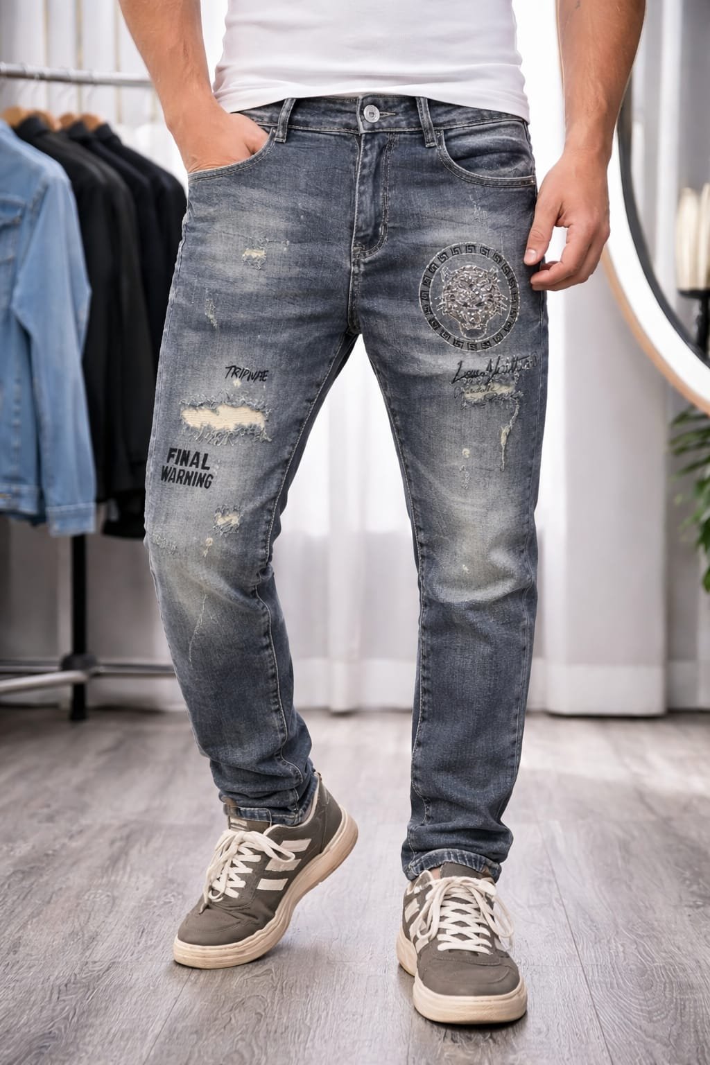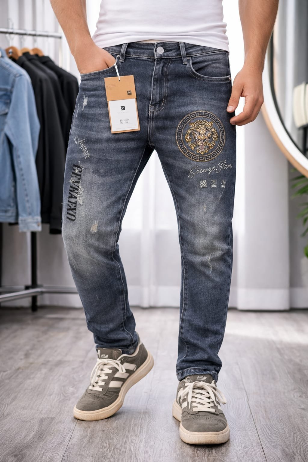 These Premium Imported Designer Jeans are made with high-quality stretch denim fabric that ensures durability, flexibility, and comfort. Each design features unique artwork, premium fading, and luxury patch detailing for a bold streetwear look.
